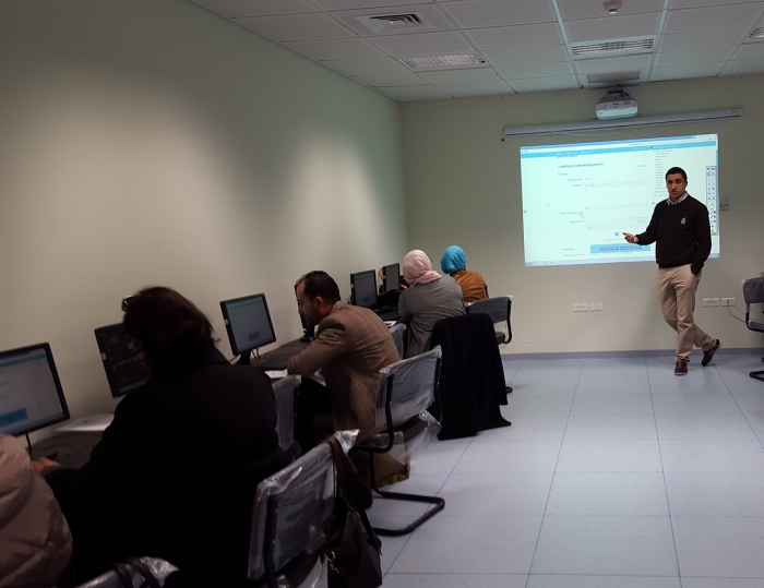 قام بالتدريب أ. مصعب ميعاري وم. رائد خلفة من مركز التعلم الإلكتروني. حيث تضمن التدريب تطبيقاً عملياً لكيفية تصميم المساقات الإلكترونية بالشكل الصحيح وإضافة الصور والملفات والكتب الداعمة للمساق وكيفية القيام بتقييم أداء المتعلمين خلال الفصل من خلال المهام والامتحانات المحوسبة وساحات النقاش التي يمكن طرحها .